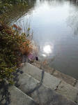 水面にぼんやりと太陽が移る真昼時