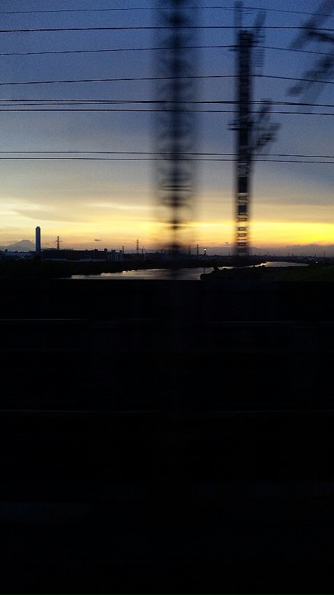 夕焼けに富士山